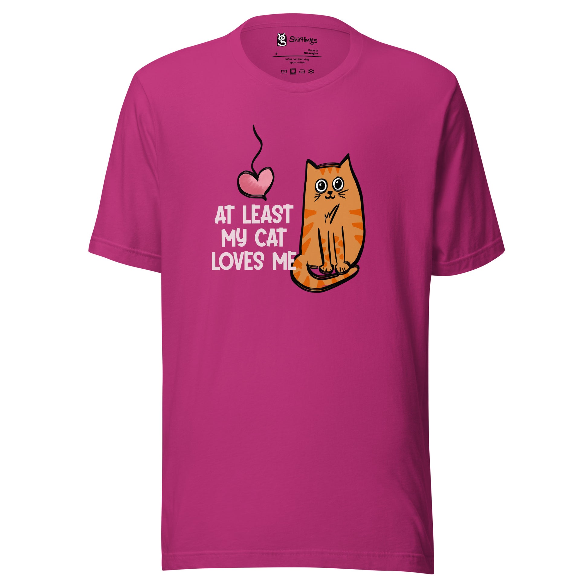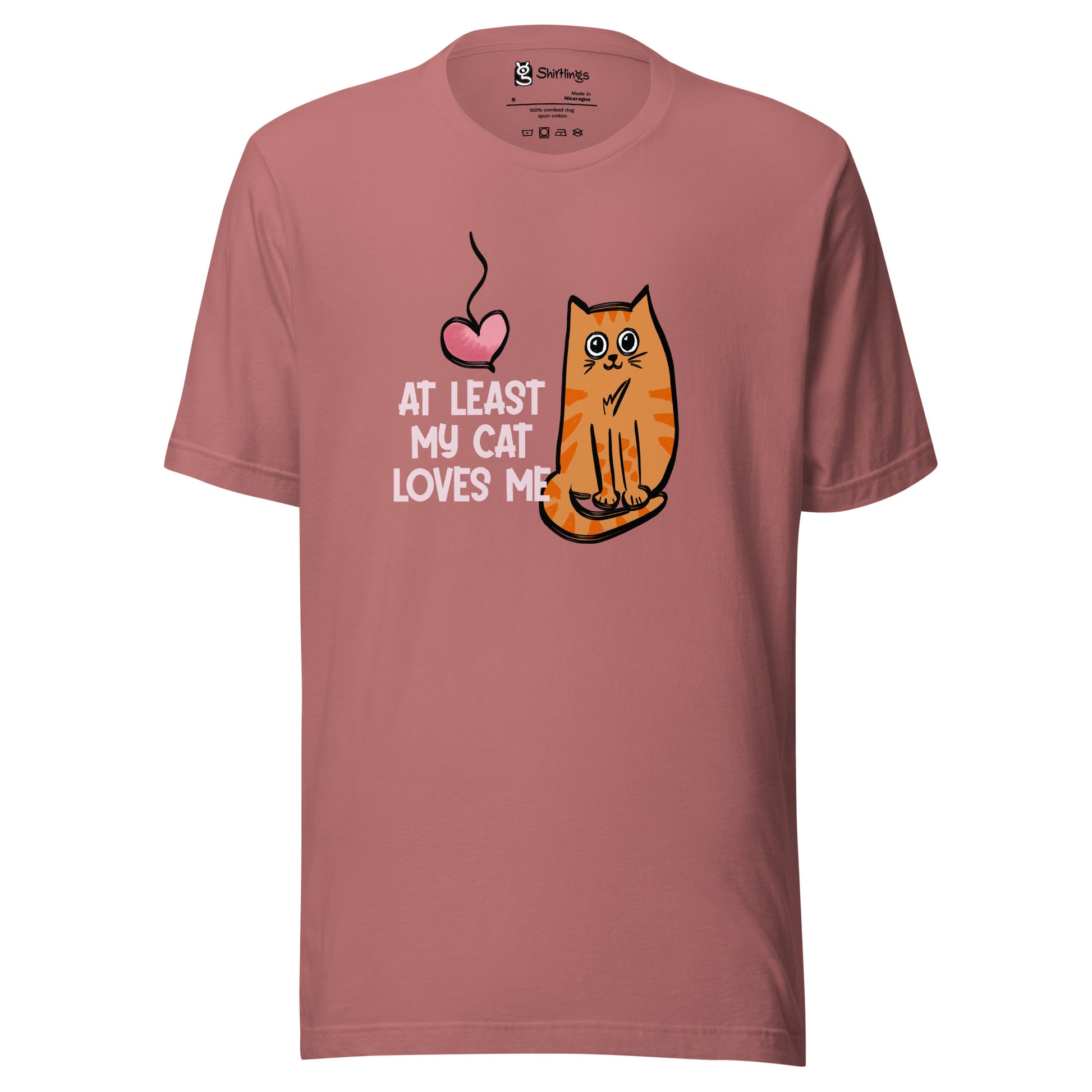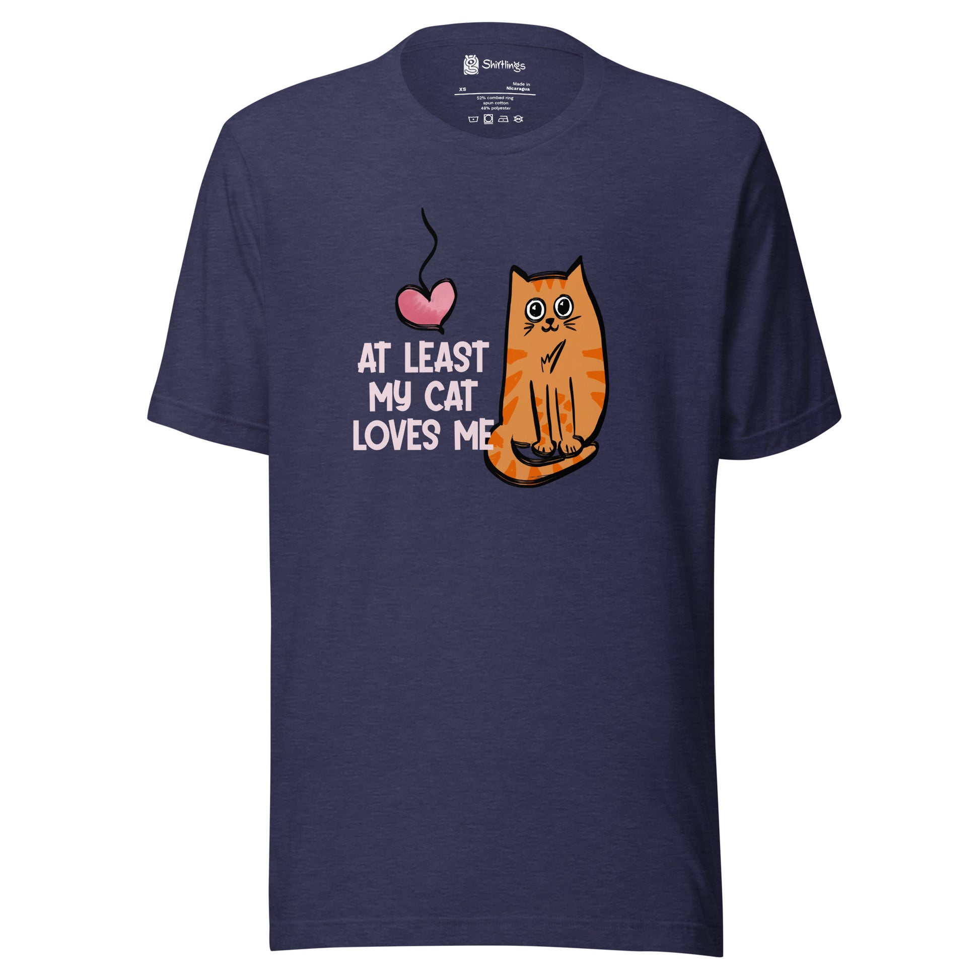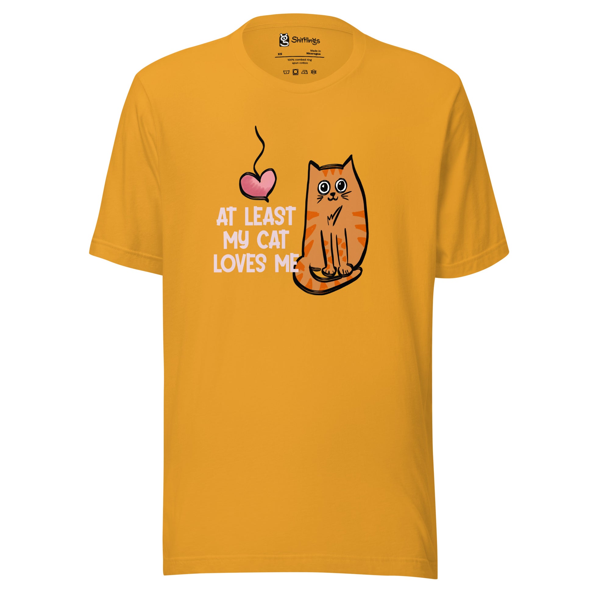 Declare your love for furry companions with our 'At Least My Cat Loves Me' tee, a delightful fusion of style, humor, and adorable feline charm.