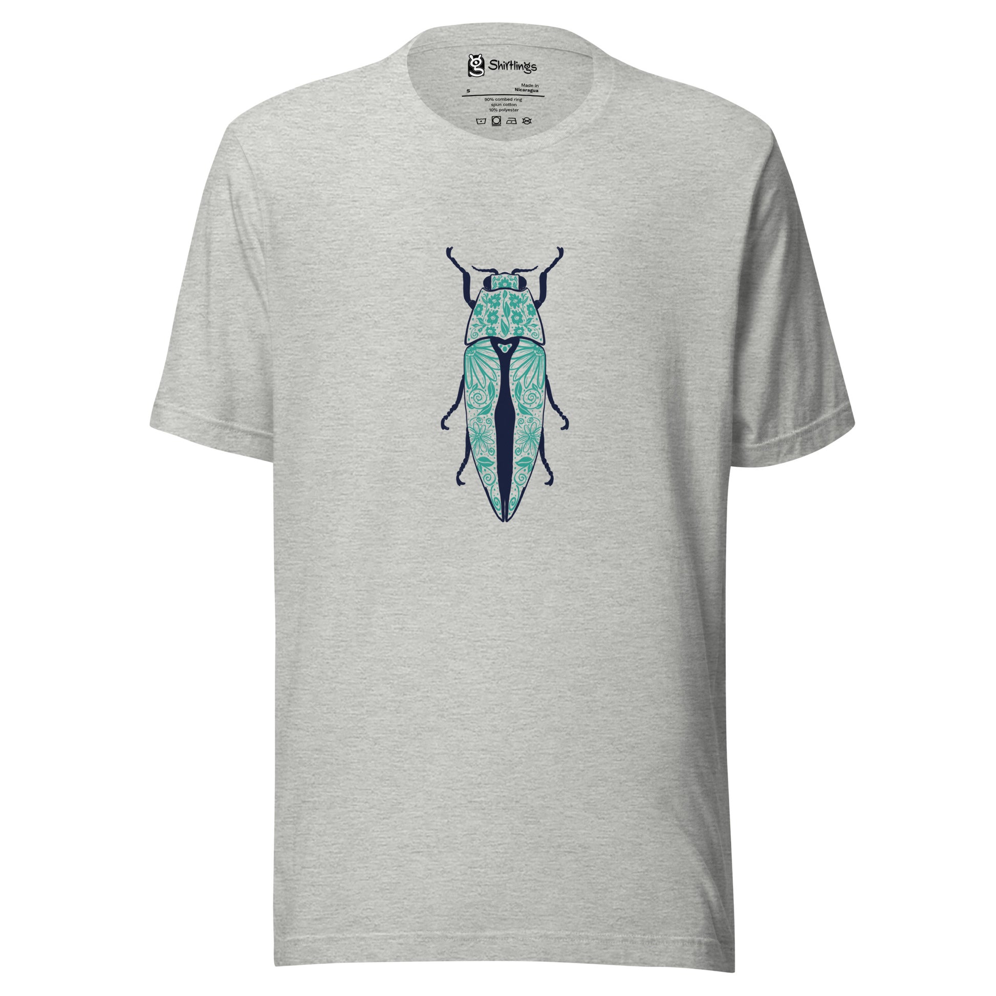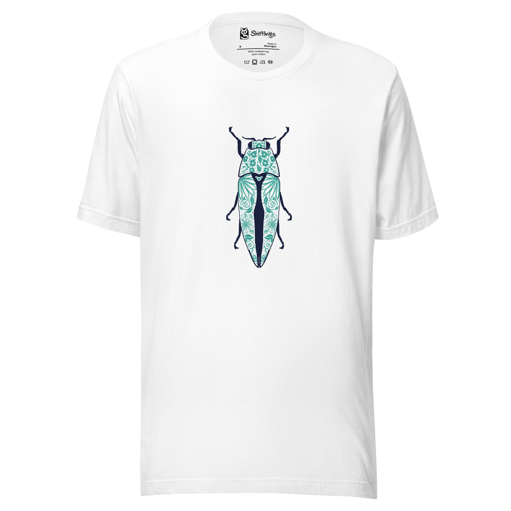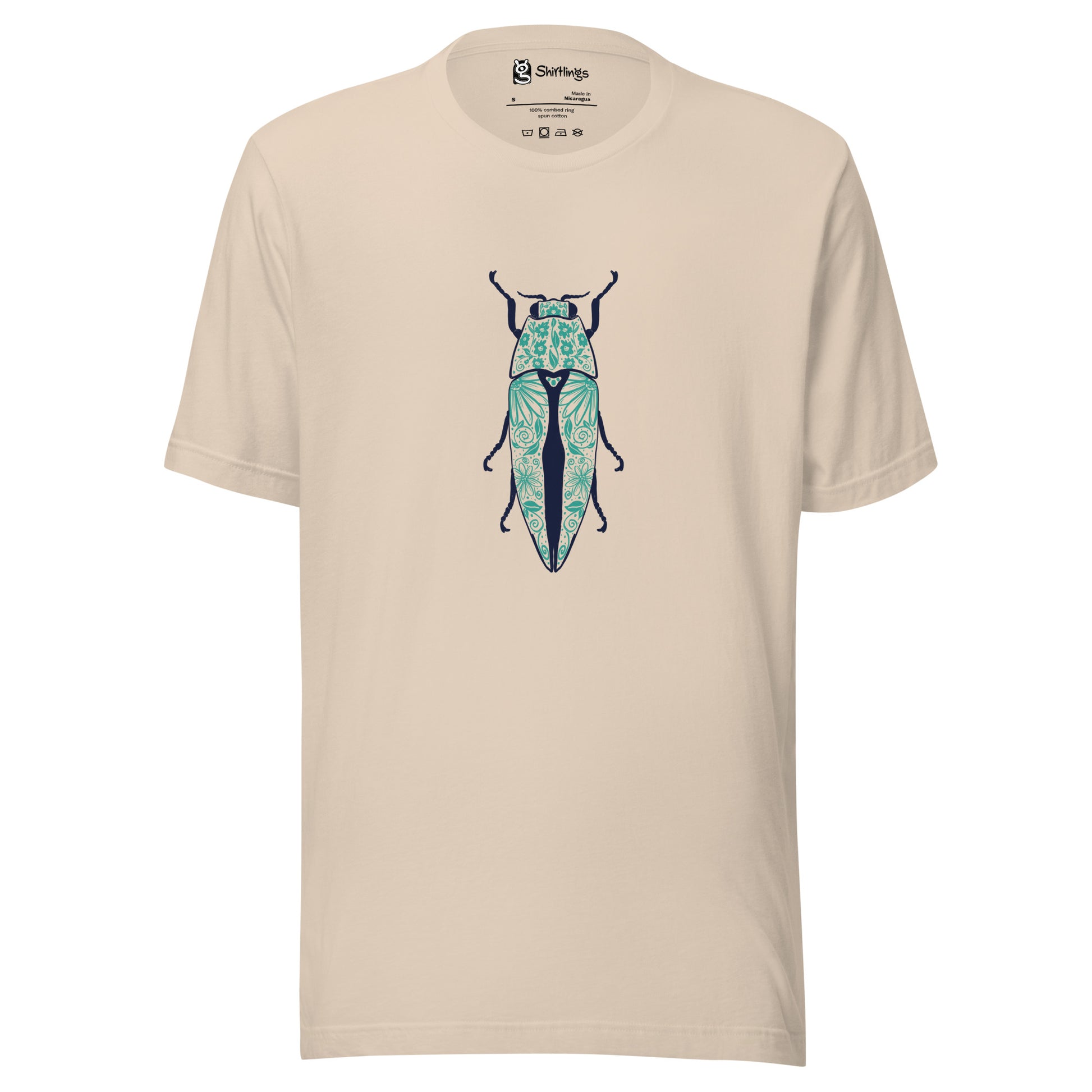 Stretched in style, our beetle tee blooms brilliantly. Perfect for those who like their bugs botanical.