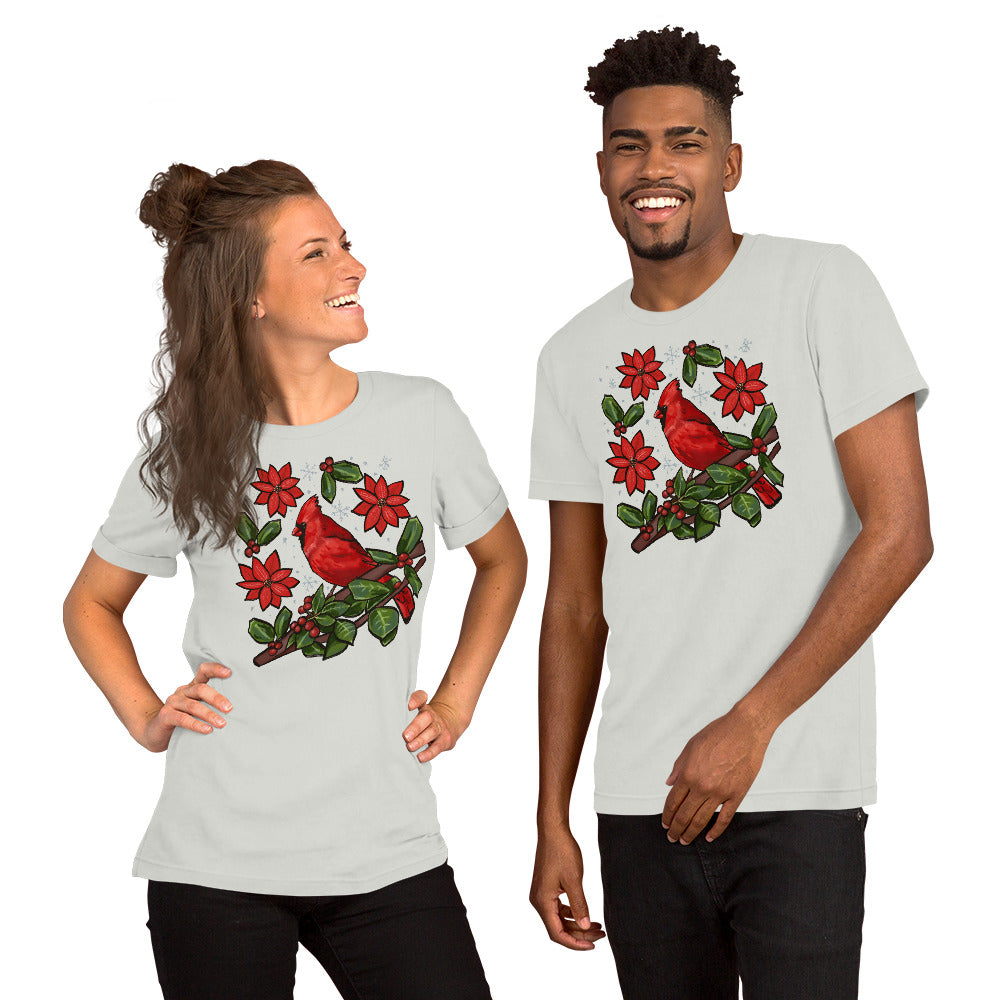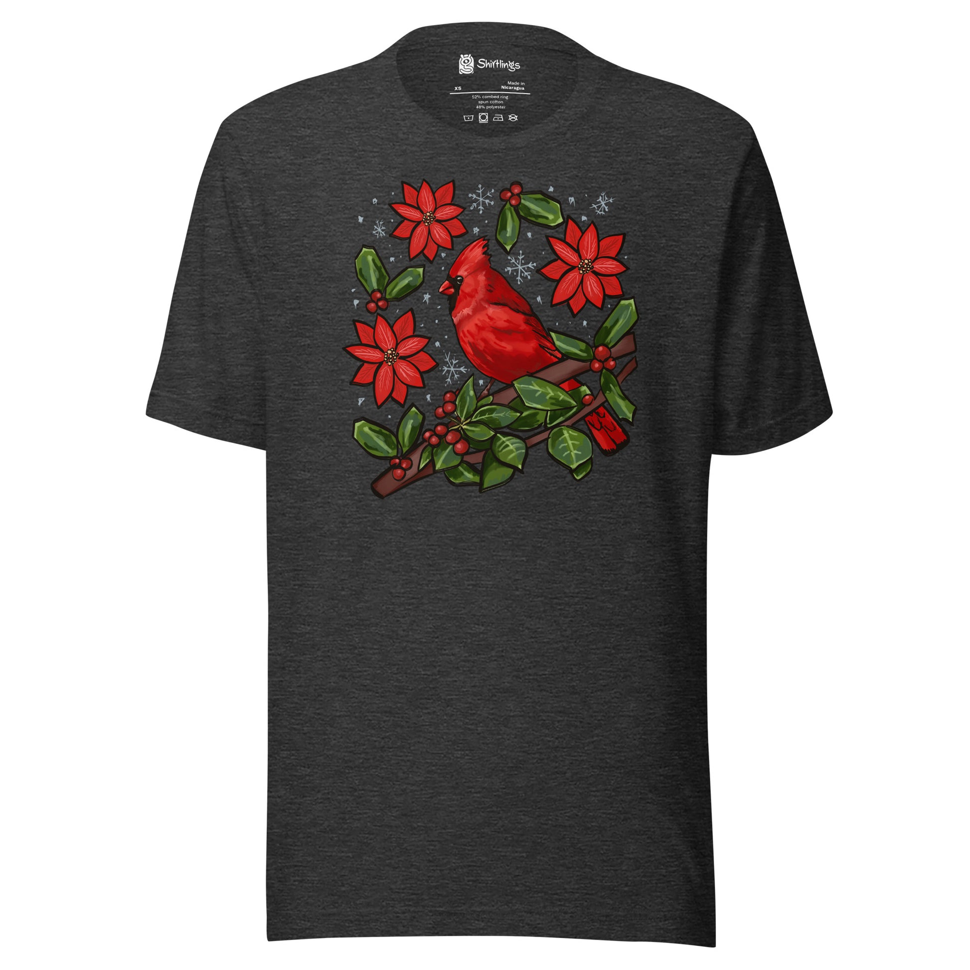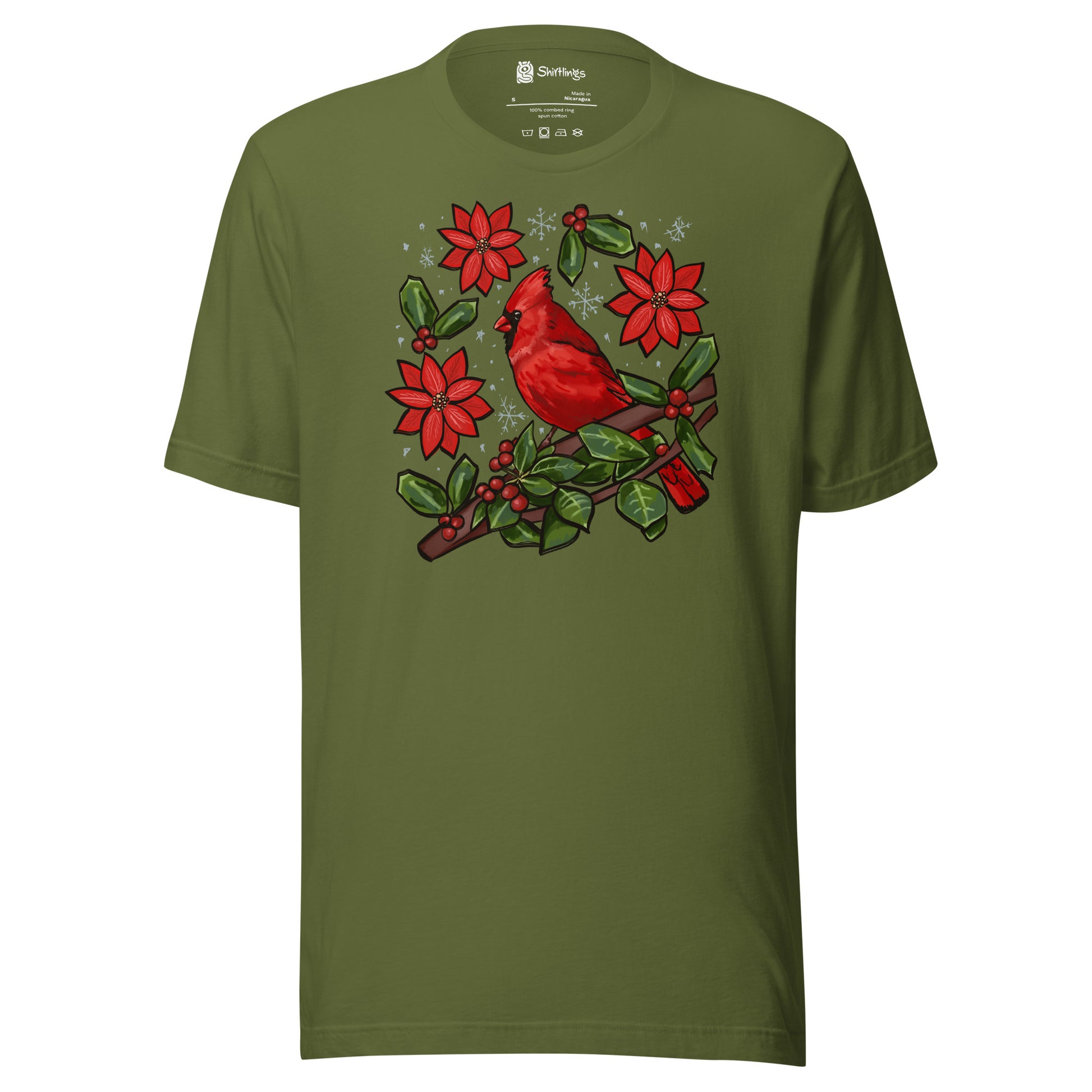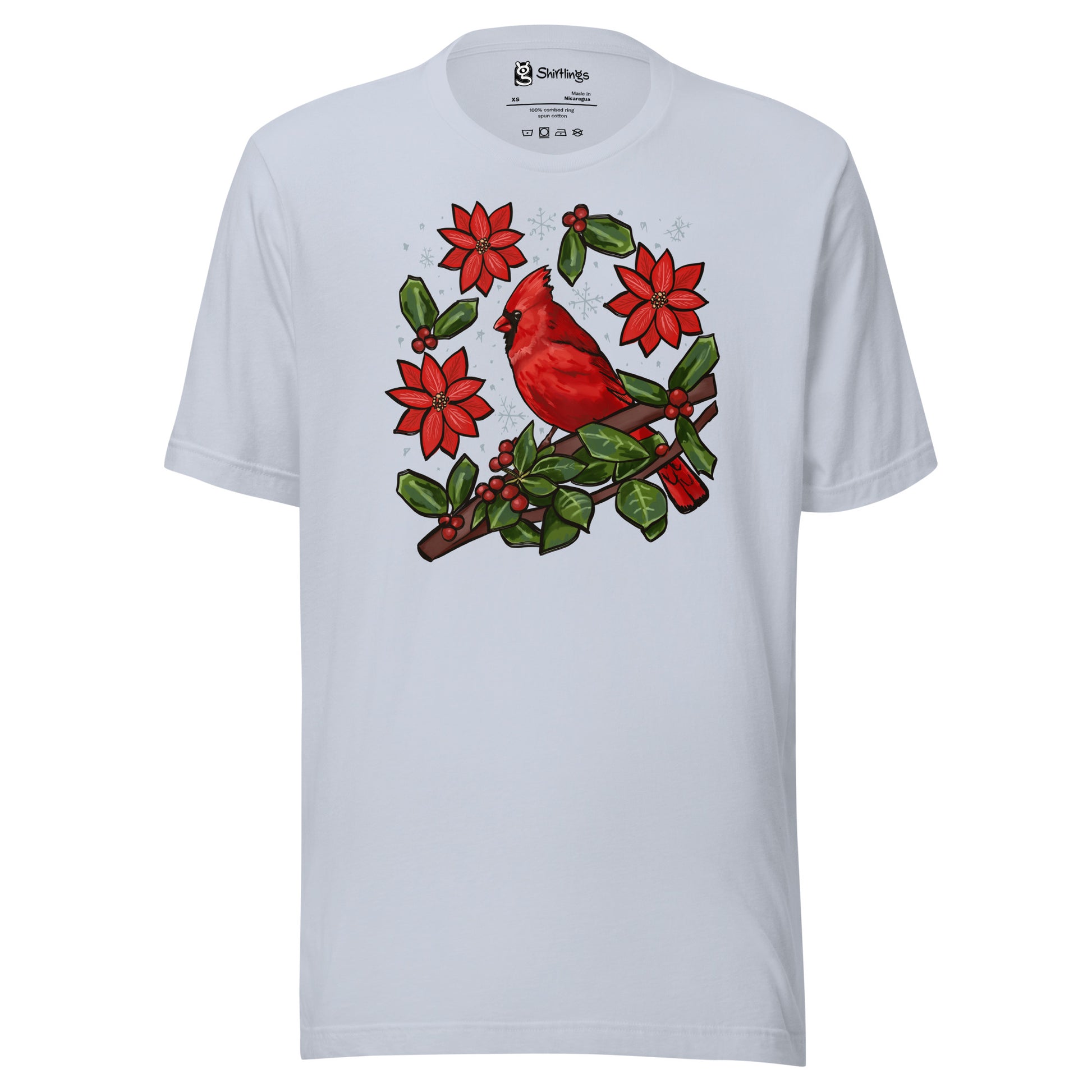 Stand out in our adult tee adorned with a striking cardinal perched among lush leaves and berries. Nature lovers and birdwatchers will flock to this vibrant design.