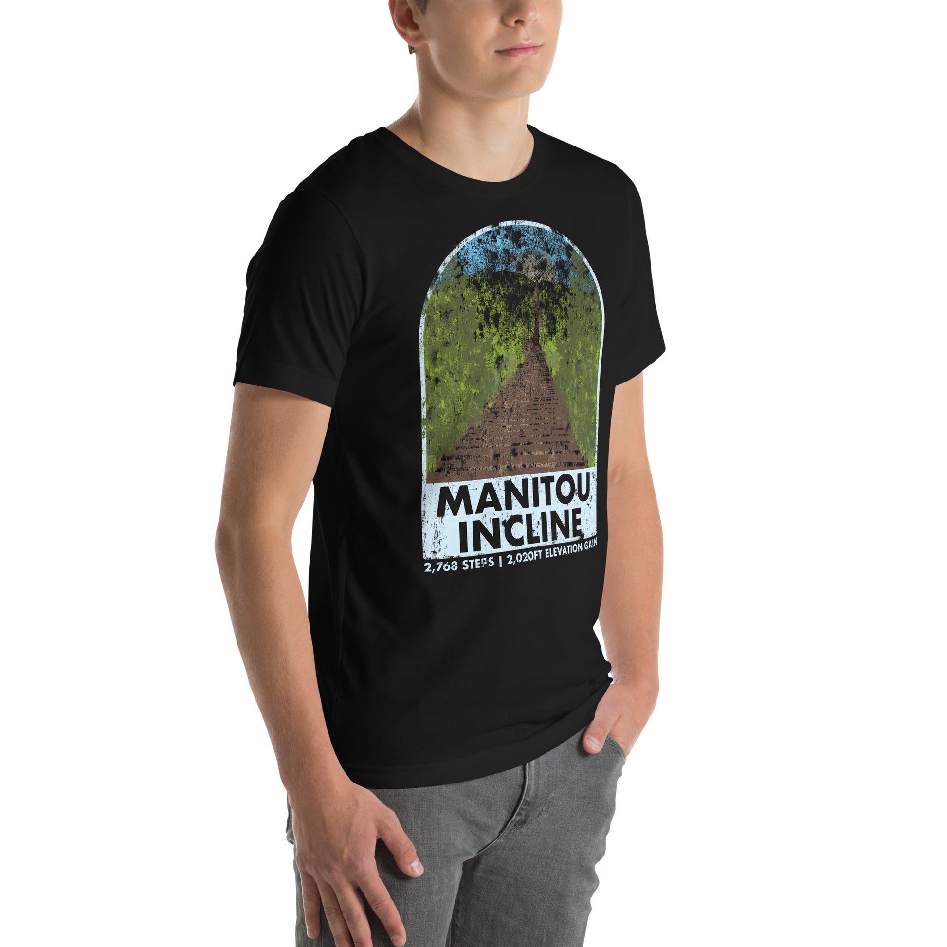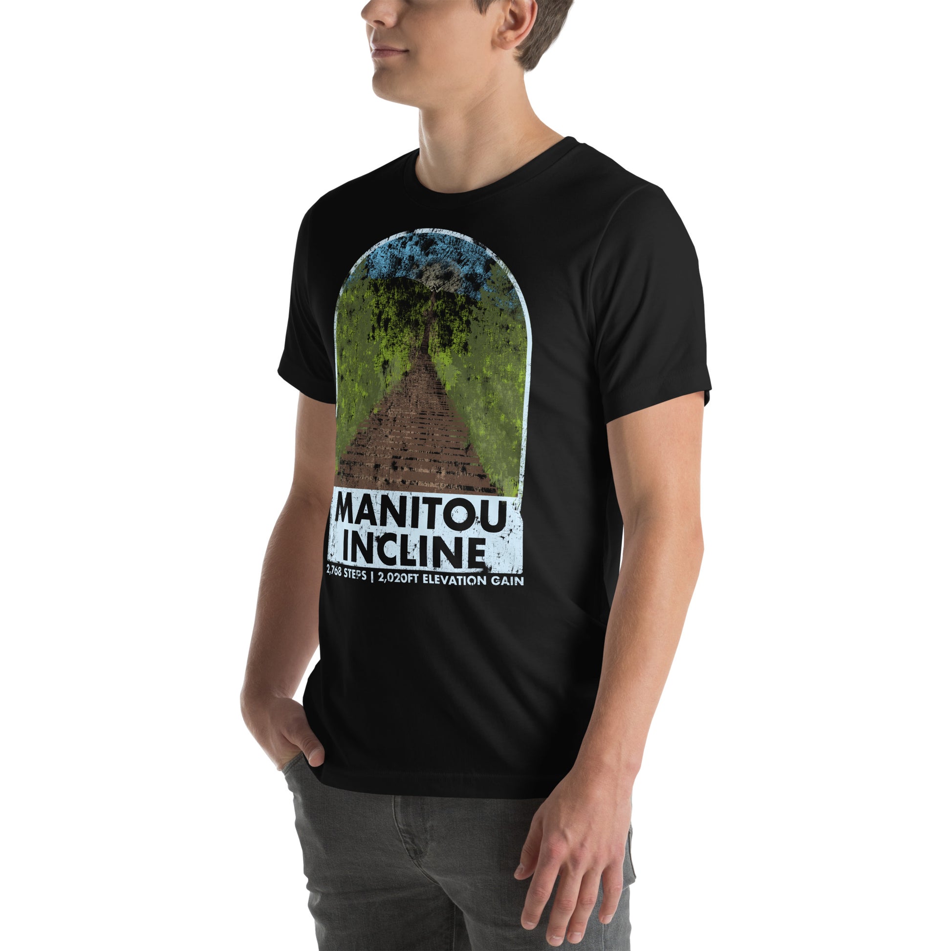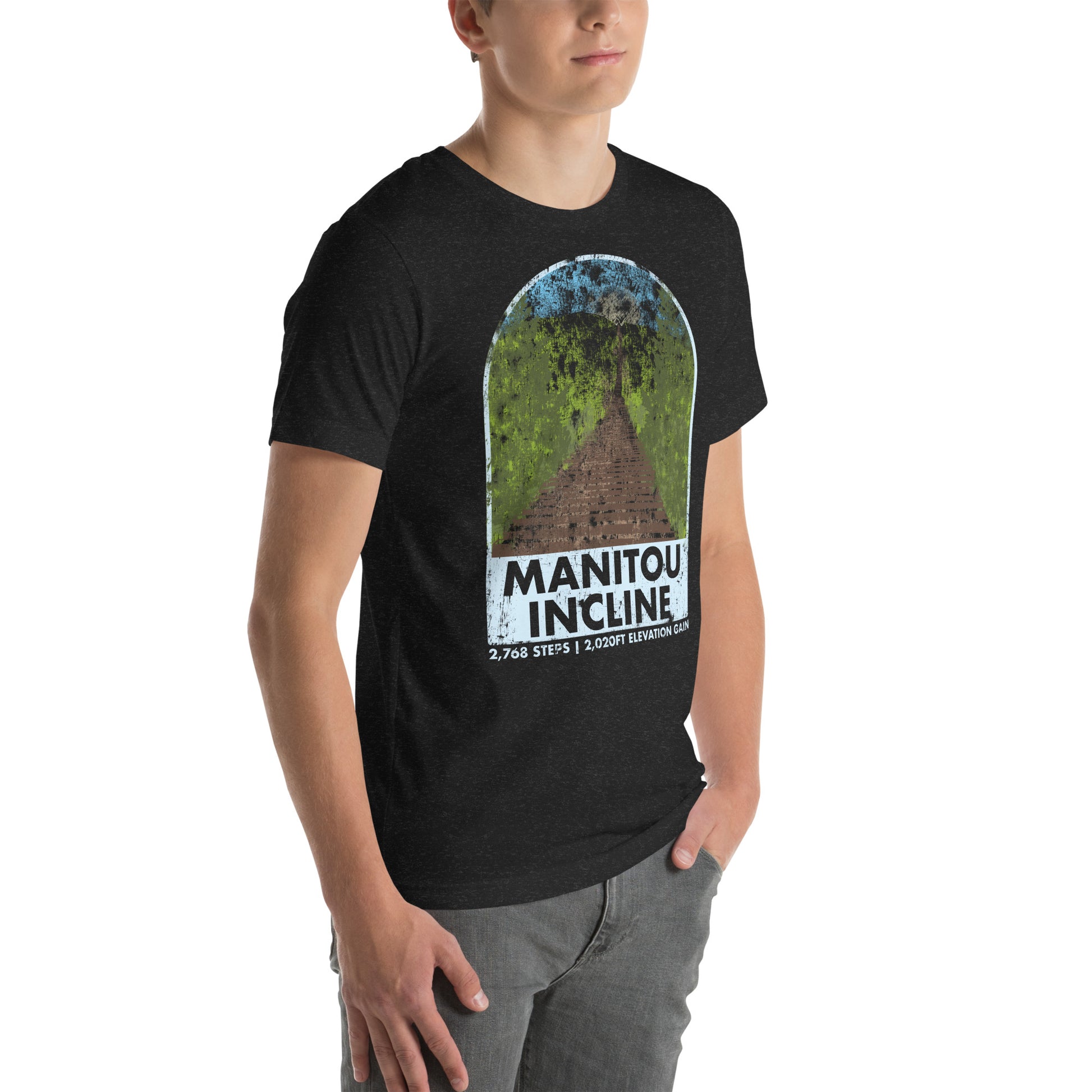 Featuring a sleek design with the "Manitou Incline" logo, it's an ideal way to commemorate your adventure or inspire future hikes. Whether you've already conquered the Incline or it's on your bucket list, this shirt is a great way to celebrate the spirit of outdoor adventure!