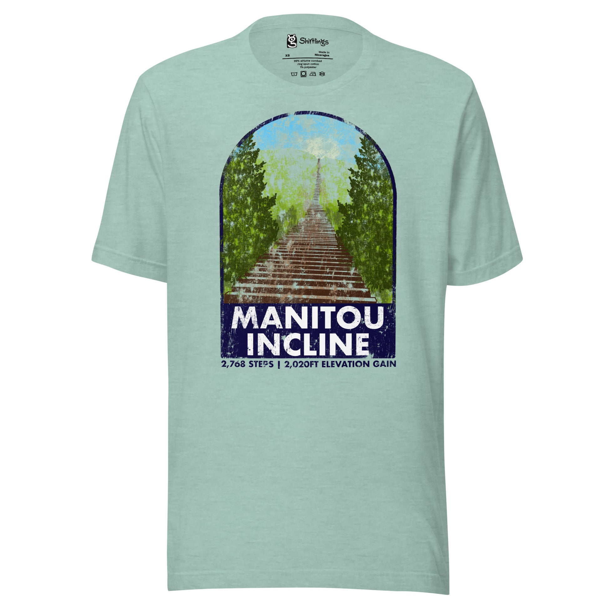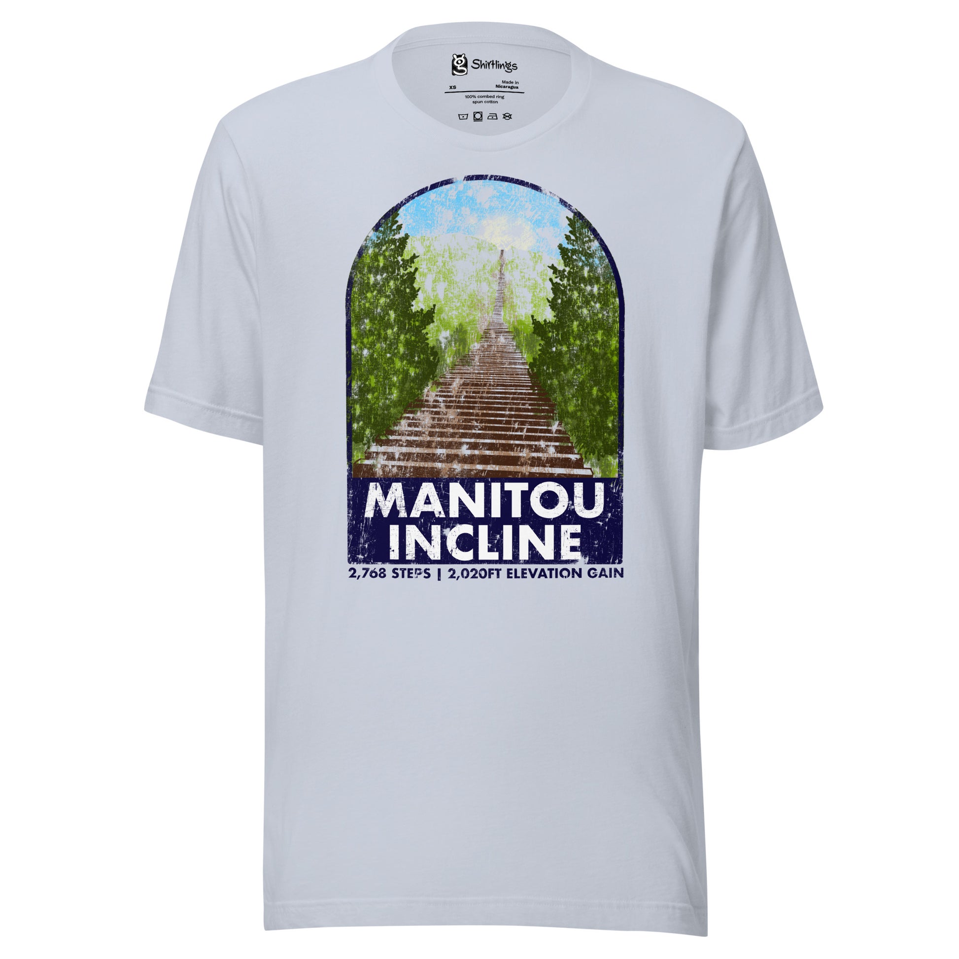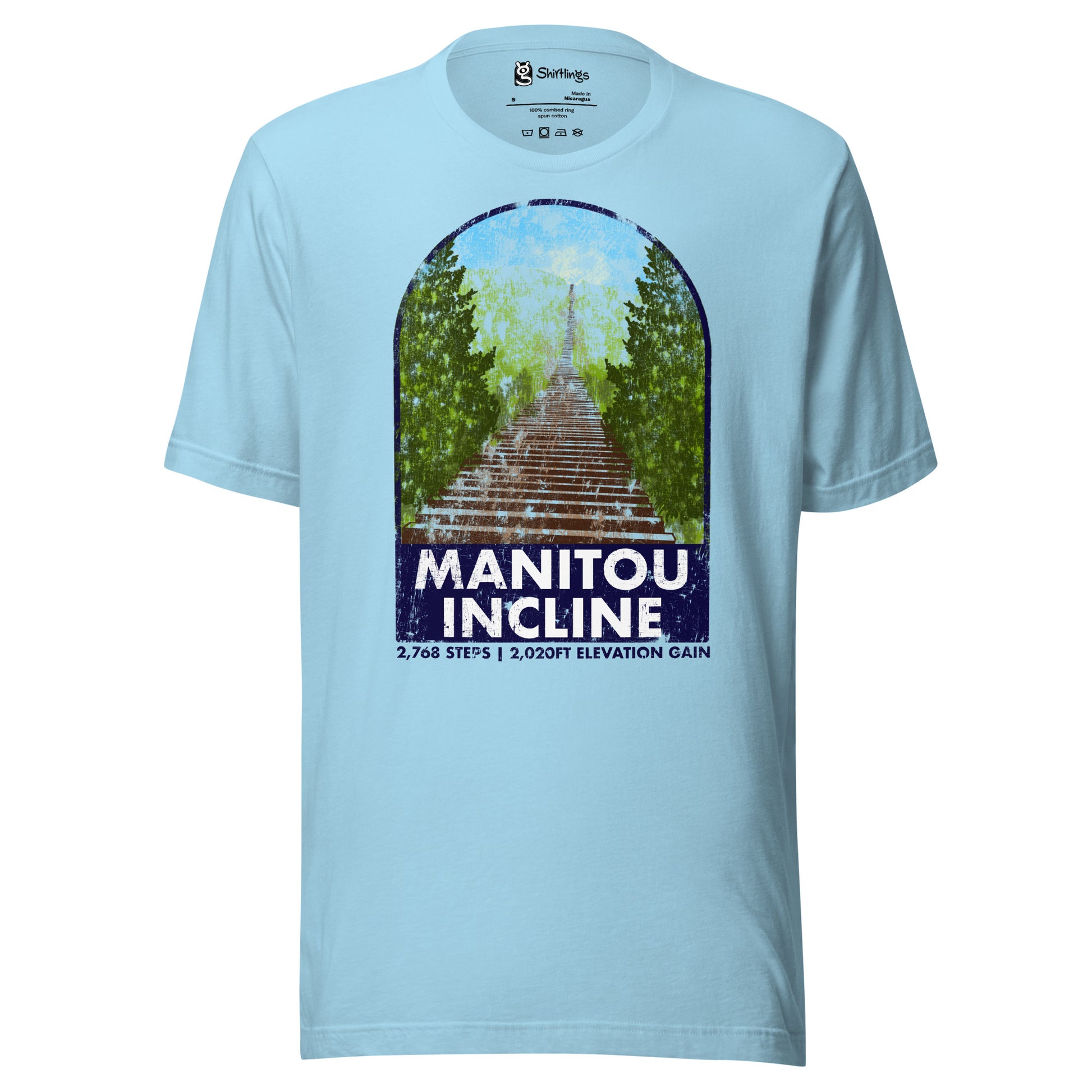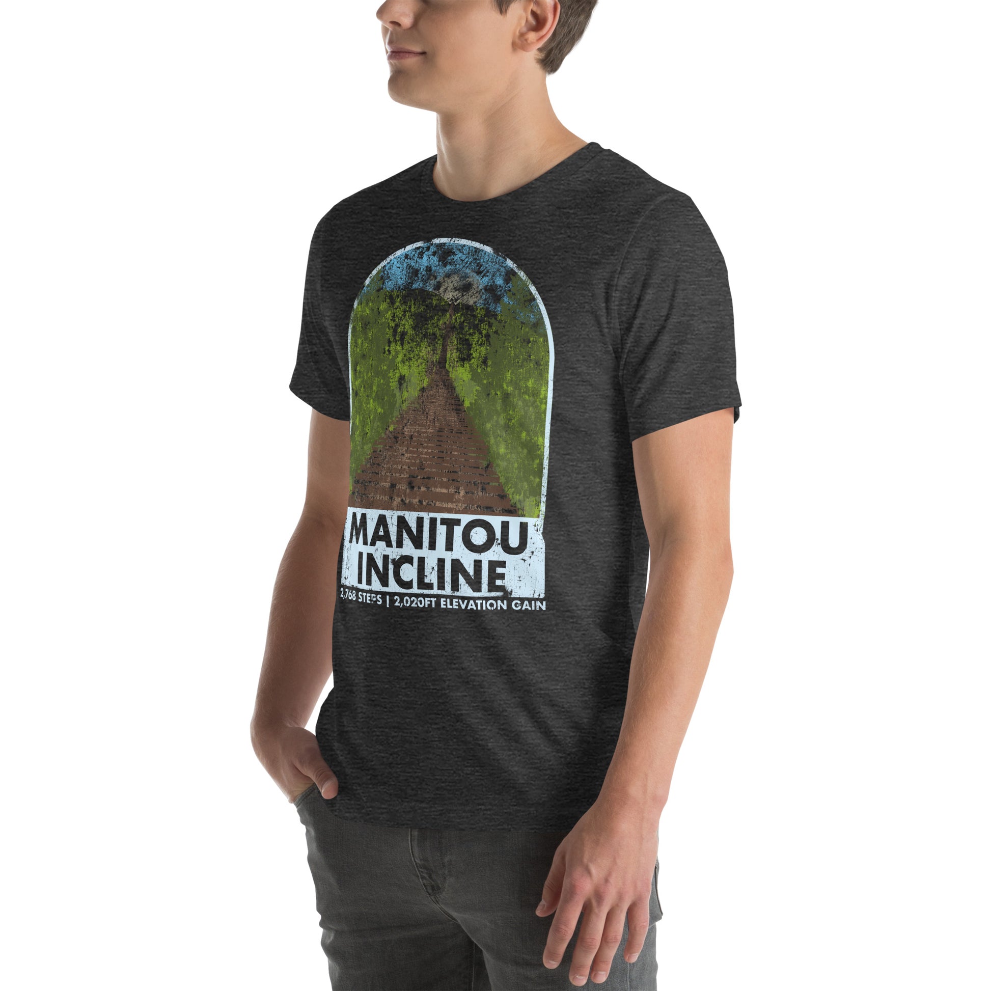 Featuring a sleek design with the "Manitou Incline" logo, it's an ideal way to commemorate your adventure or inspire future hikes. Whether you've already conquered the Incline or it's on your bucket list, this shirt is a great way to celebrate the spirit of outdoor adventure!