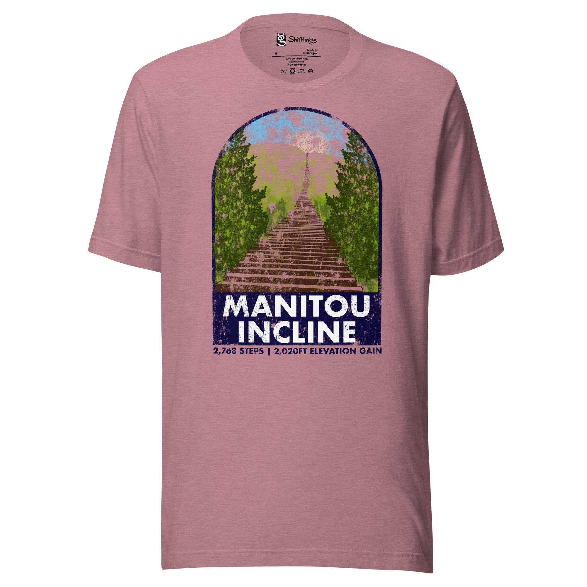 Conquer the climb with our "Manitou Incline" Shirt! Perfect for outdoor enthusiasts and fitness lovers, this shirt is a tribute to the legendary Manitou Incline—a challenging, mile-long hike with a 2,000-foot elevation gain that rewards you with breathtaking views.