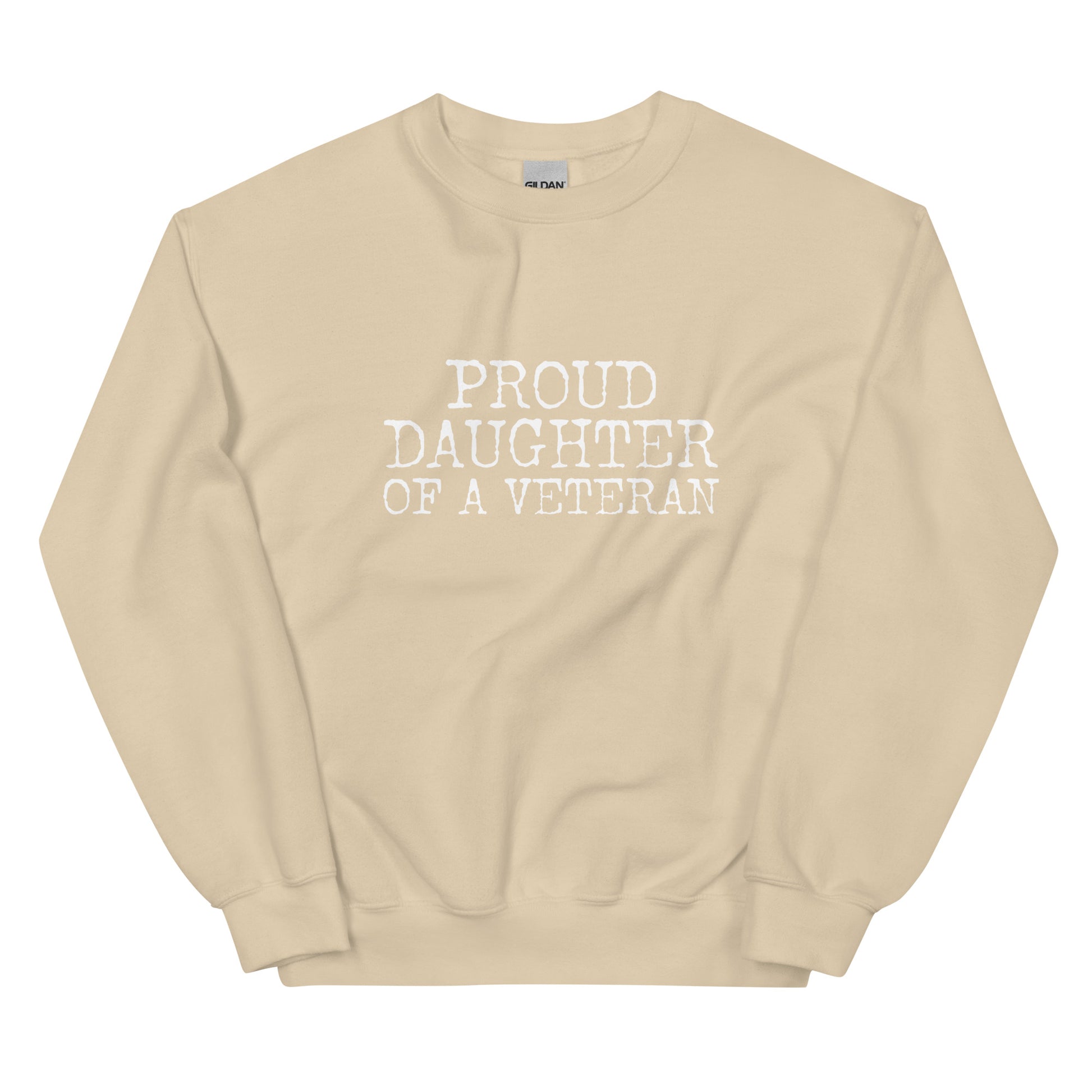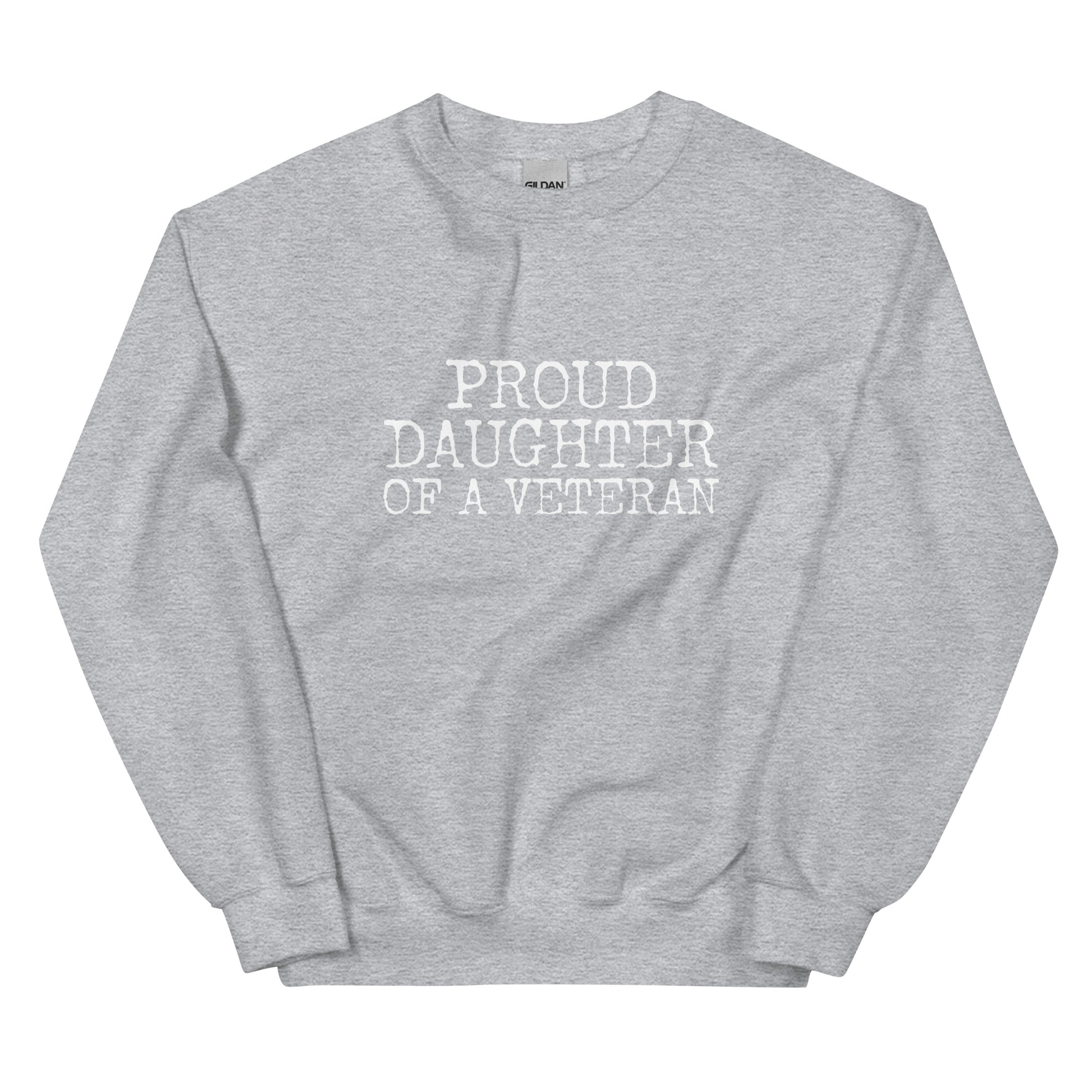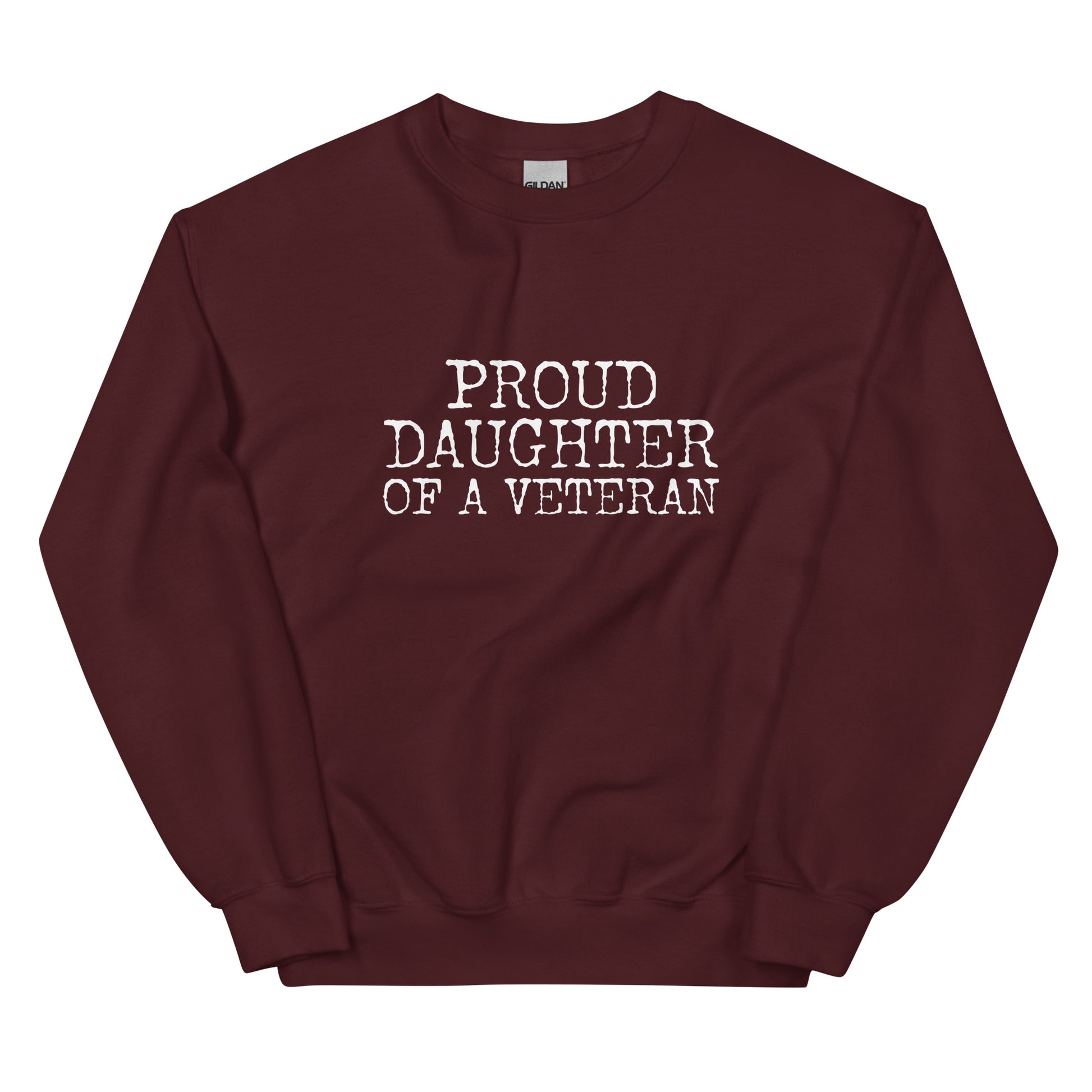 Are you a daughter of a veteran? Show your pride, show your love, show everyone you are proud of your veteran parent with this "Proud Daughter of a Veteran" crewneck sweatshirt.