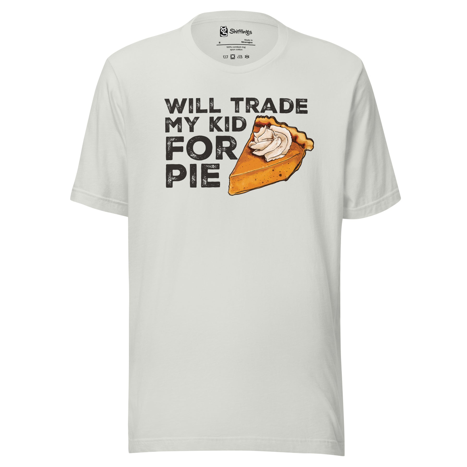 Wear your love for pumpkin pie proudly with our adult tee. "Will Trade My Kid for Pie" is the witty, dessert-themed statement piece that adds humor to your wardrobe.