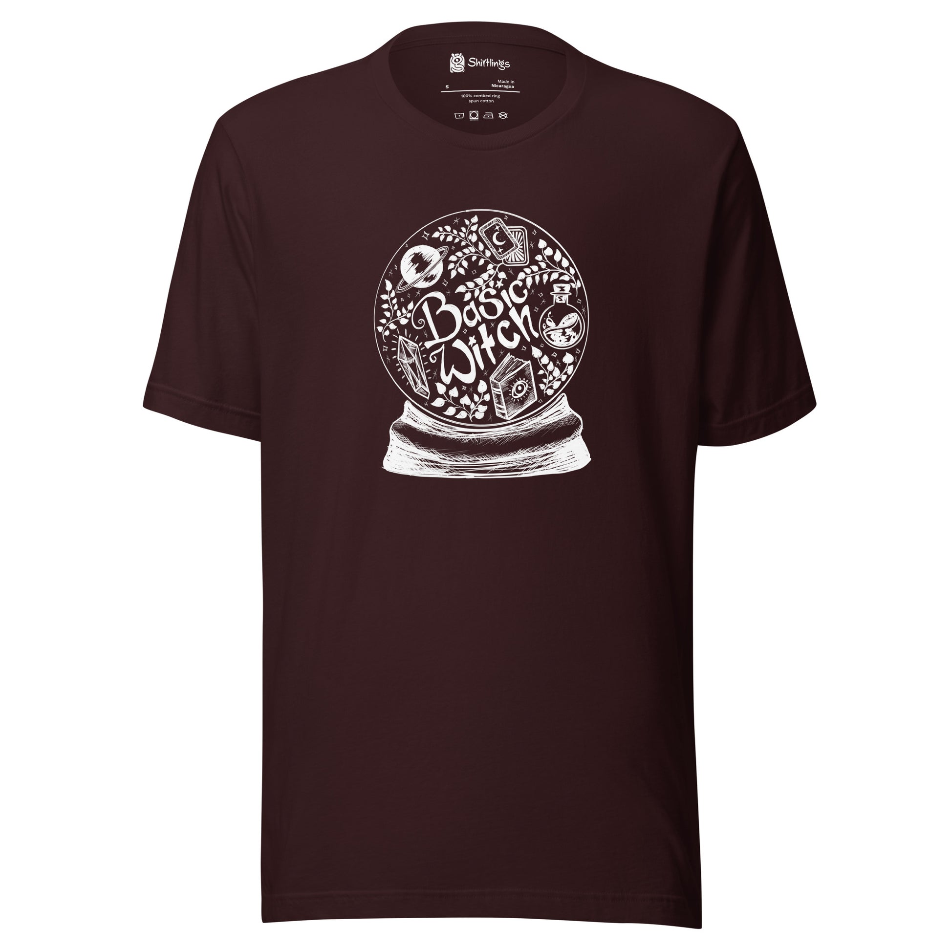 Get ready to embrace your inner enchantress with our “Basic Witch” tee, featuring an array of mystical symbols and a cheeky crystal ball message! It's your potion for laughs and style!Product Details