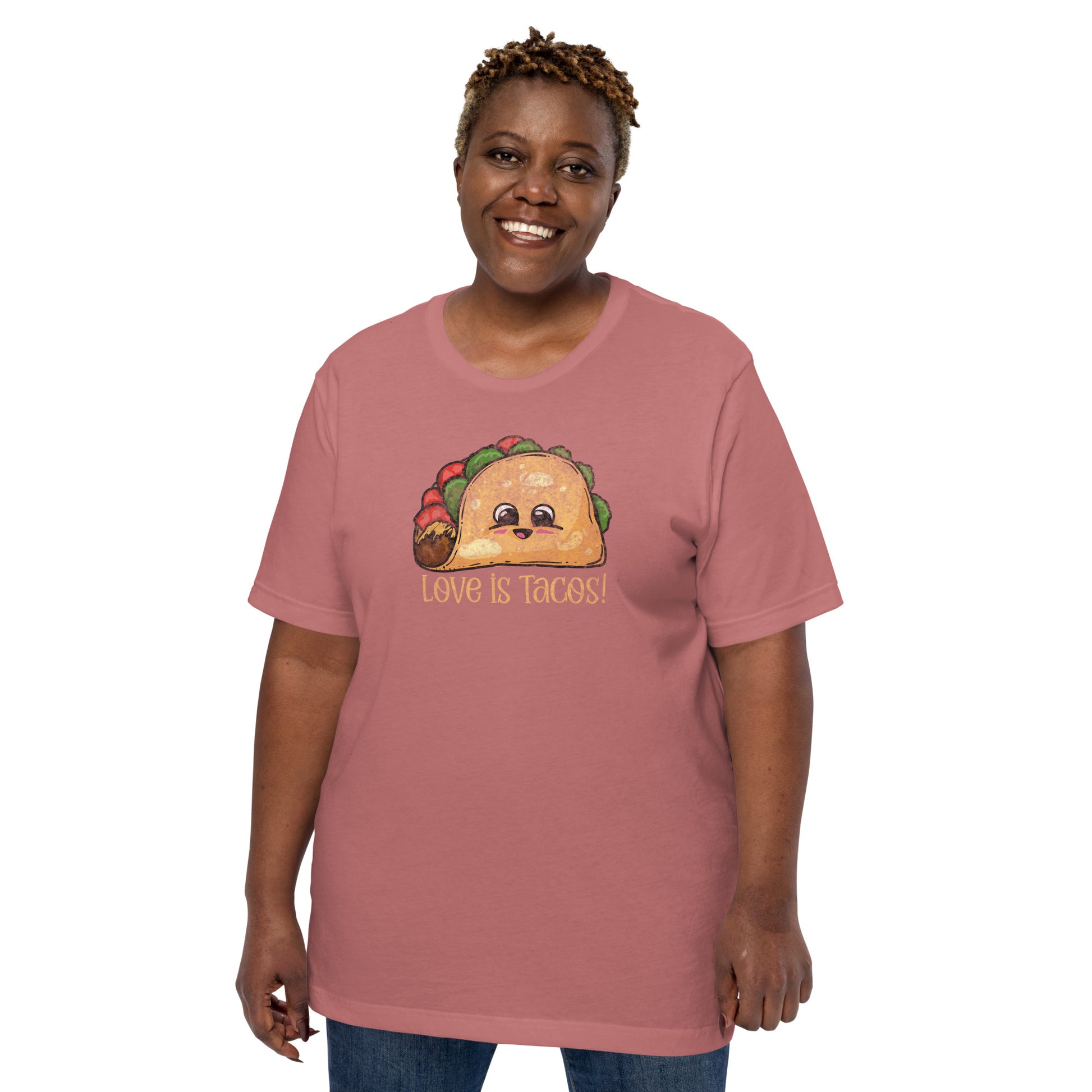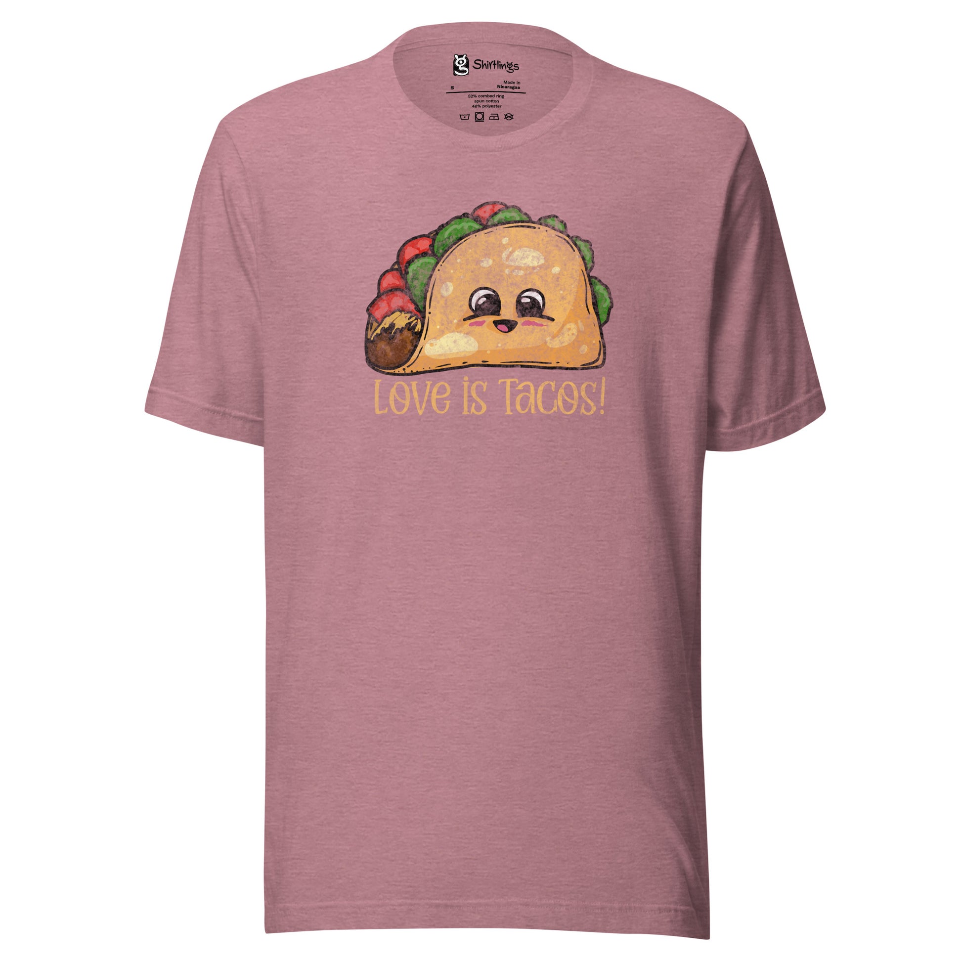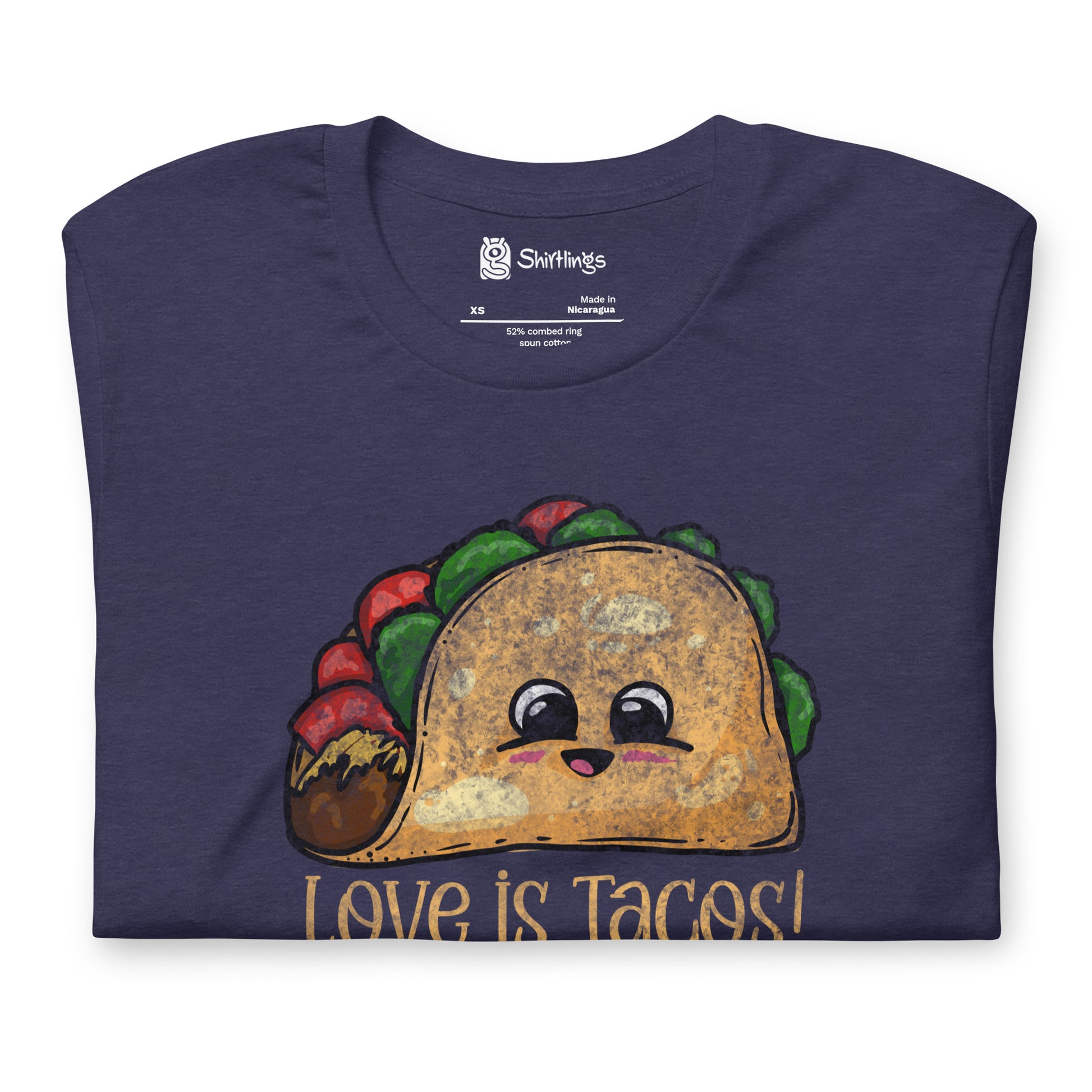 Spice up your day with the 'Love is Tacos' tee, a tastefully amusing piece that celebrates your affection for both comfort food and cozy attire.
