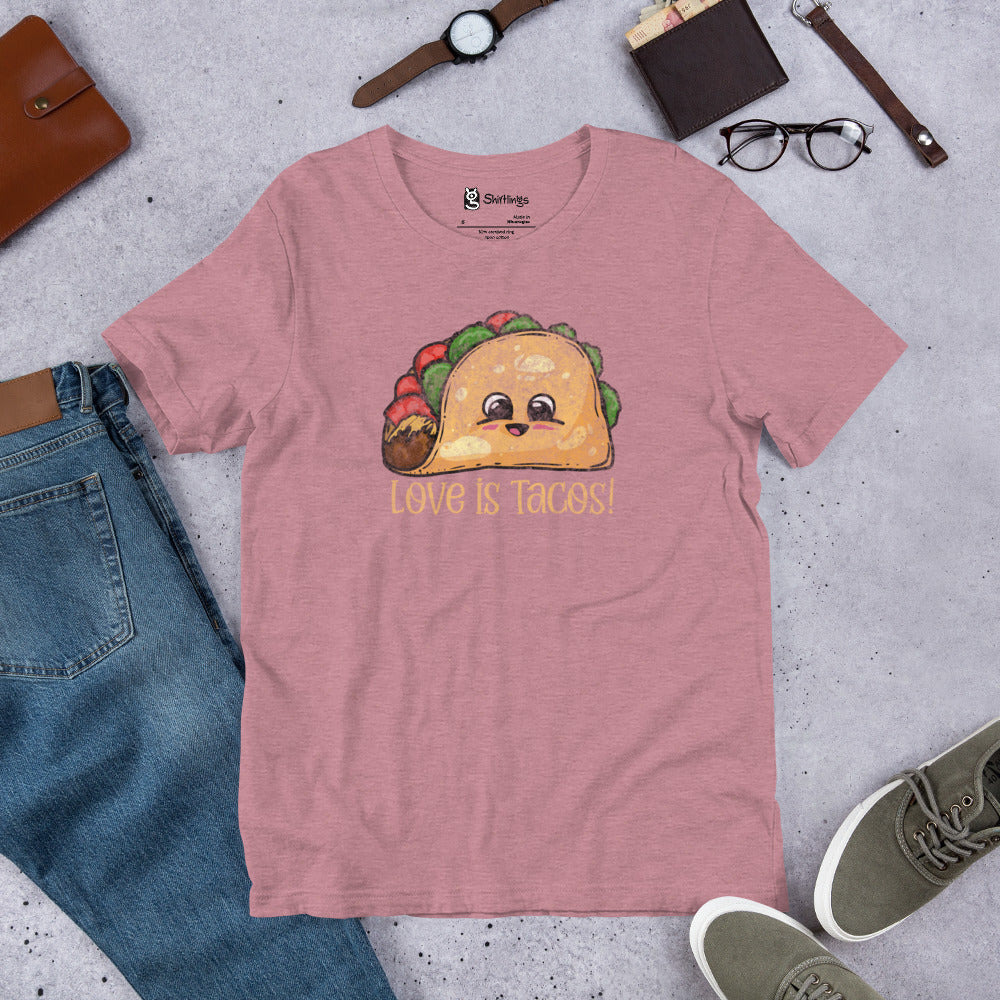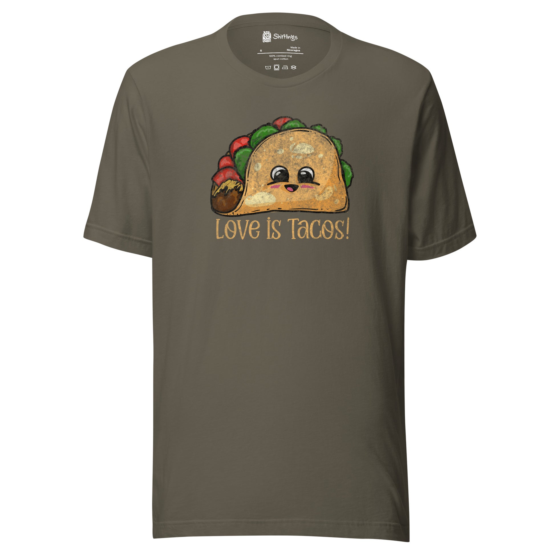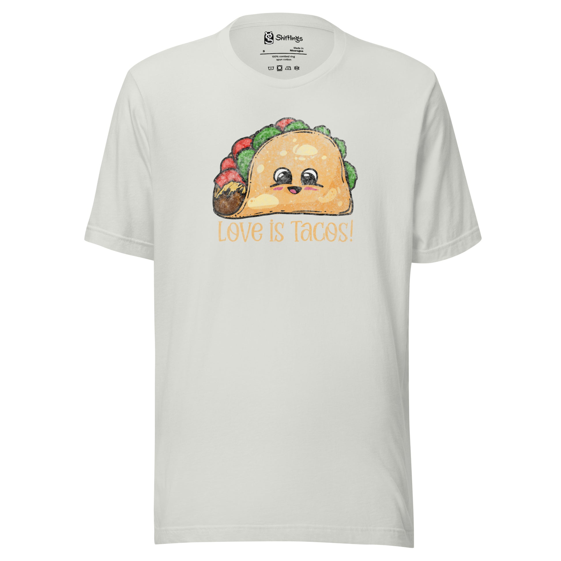 Spice up your day with the 'Love is Tacos' tee, a tastefully amusing piece that celebrates your affection for both comfort food and cozy attire.